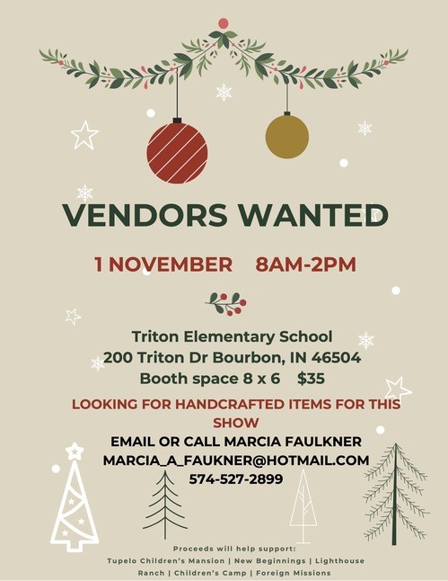 This year our Holiday Craft Show will be held at Triton Elementary School on Saturday November 1st 2025 from 8am - 2pm. Information about registering for a both can be found below!
